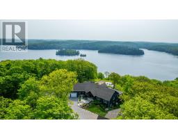 Experience refined lakeside living on the private shores of Loon Lake, where 800 feet of deep waterfront & over 5,000 sq ft of thoughtfully designed living space come together in perfect harmony. This year-round meticulously maintained 3+2 bedroom residence is the epitome of peace and luxury, offering breathtaking panoramic views and unmatched privacy. At the heart of the outdoor experience is a stunning natural granite and stone firepit area with lake vistas. Enter through a timber-frame porch into the grand Great Room, where a floor-to-ceiling dry stack stone fireplace, engineered hardwood flooring and lots of windows invite the outdoors in. Enjoy the 850+ sq ft deck with glass-panel railings, where sunrises & the tranquil lake horizon set the tone for each day. The kitchen is equipped with stainless steel appliances, soft-close cabinetry & a corner sink with captivating views. The main-floor primary suite is a private sanctuary, complete with a ensuite with heated floors, a walk-in closet & direct access to a screened-in Haliburton Room. The lower level extends the homes versatility with two more bedrooms, games room, heated floors, a second kitchen, 3-piece bath, and a cozy living area that opens to the hot tub room, stone flooring & stacking windows blend indoor comfort with natures beauty. Designed for accessibility and functionality, the home features, wide hallways, California shutters, & a spacious laundry room with heated floors & sink, generator & 200 amp. The heated triple garage includes a drive-through bay, electric openers,100-amp panel & 9ft doors. A separate 1,800 sq ft heated garage/workshop with 9-ft doors, 100 amp & a wood lean-to offers ample space for hobbies & storage, landscaped with dry stack stone walls, perennial gardens, & a generator backup system. On this 54 acre parcel you can hunt in your own backyard and close to snowmobile trails. An easy 4 min. walk or short ATV/UTV path to lakeside decking area with deep water off docks end. (id:50886)