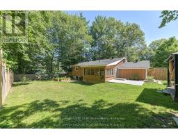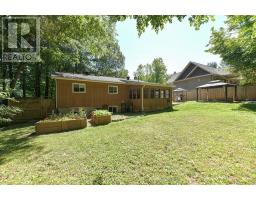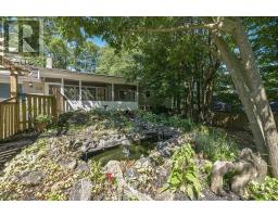 Nature's Paradise Found. This well maintained bungalow in this sought after neighbourhood is what you are looking for, minutes to the beach, schools and all amenities. The main floor features a spacious living room with a wood burning brick fireplace, eat-in kitchen has walkout to cedar deck and separate walkout to 3 season cedar lined sunroom making it ideal for a hot tub. Primary bedroom has a tasteful 4 piece ensuite with 6ft Maax whirlpool tub and shower with self closing door and corner seat. Laundry has ample space, shelving and storage and is ideally located on the main floor. This is a carpet free home. The fully finished lower level is ready for you to use your imagination, large open space with corner free standing gas stove. Imagine a pool table, work out area, family fun all with large above grade windows letting the natural light in. There is also a den, 3 piece bath and utility room with newer upgraded gas furnace, on the lower level. The attached Garage is currently a heated workshop. Now for the outside, cedar decking, flower and vegetable gardens, BBQ centre gazebo and dining gazebo and storage shed in the rear and waterfall and fish pond with gardens in the front and all completely fenced in. Enclosed front porch completes the privacy and quiet relaxing atmosphere at this home. Ideal for retirees, or a couple just starting out. (id:50886)