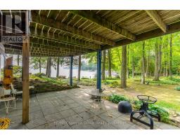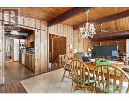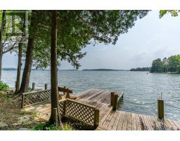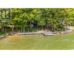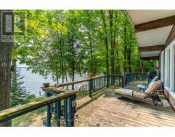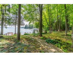 Where the shoreline stretches wide and the seasons play out at your front door, this Lake Eugenia property delivers space, privacy, and four-season fun. At least 180 feet of south-facing shoreline sets the stage for year-round living or your future build. Once an original double lot, this 0.639-acre property is mostly treed and natural, with a forest floor that blends seamlessly into the shoreline. A full-length walkway stretches across the water's edge, set over a stone wall, leading to a dock for deeper-water access. At the west end, a sandy beach with a gentle, shallow entry is perfect for children or relaxed wading. The Viceroy-style bungalow, built in 1968 with a later-added basement, offers a total of five bedrooms and two bathrooms. The main floor features three bedrooms and a five-piece bath, along with a galley kitchen that opens to the dining and living rooms. Expansive windows frame the lake views, and multiple walkouts lead to a wraparound deck, perfect for morning coffee, summer meals, or simply soaking in the scenery. The walkout lower level includes two additional bedrooms, a three-piece bath, and a laundry area, plus a spacious rec room warmed by a propane fireplace with direct access to the outdoors. The main heat source is electric baseboard throughout, and the septic system was replaced in 2021 and a Hy-Grade metal roof in 2006. A detached, uninsulated, oversized double-car garage provides space for vehicles and gear. This property is ideal for those seeking a premium lot with an affordable cottage to enjoy as-is, or for anyone planning to build a custom waterfront retreat now or in the future. Whether your days are spent swimming, paddling, or fishing from your dock, skiing at nearby Beaver Valley Ski Club, or hiking the Bruce Trail, this location offers four seasons of recreation and the rare privacy that comes with such generous frontage on Lake Eugenia. (id:50886)