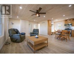 Located in the heart of West Guilford, this beautiful totally renovated home offers a perfect blend of modern design, timeless character, and community charm. Inside, you will find whitewashed pine ceilings, wide windows, and thoughtful finishes that create a bright, welcoming atmosphere. The open-concept main floor showcases an expansive eat-in kitchen with quartz countertops, tile backsplash, stainless steel appliances, and an abundance of custom maple cabinetry, seamlessly flowing into the sunlit living room ideal for everyday living and entertaining. Two oversized bedrooms and a stylish four-piece bath complete the main level. The lower level is designed for comfort and function, featuring a generous primary suite with walk-in closet, a three-piece bath complete with heated floors, laundry, and a spacious rec room for additional living space. A covered front porch adds charm and extends the homes outdoor enjoyment. The home features a propane furnace, drilled well with UV system, and three-bedroom septic, outside you will find a 10x10 shed, fenced in dog kennel and a detached well insulated garage with a separate heat system, providing valuable additional space. Set on a flat, level corner lot, the property is within walking distance to Pine Lakes public beach, the community center, West Guilford Shopping Centre with LCBO outlet, K Pub Restaurant, and the Cottage Country Log Cabin. Outdoor enthusiasts will also love the proximity to Haliburton Forest, ATV and snowmobile trails, and some of the regions best fishing lakes. Just 10 minutes from Haliburton Village, 20 minutes from Minden, and 10 minutes from Carnarvon and the Hwy 35/118 corridor, this home delivers the best of country living with convenient access to town amenities. Whether you're searching for a family residence, a stylish weekend retreat, or a long-term retirement property, this move-in-ready home is prepared to welcome its next owner. (id:50886)