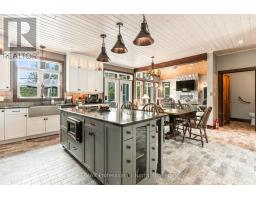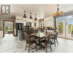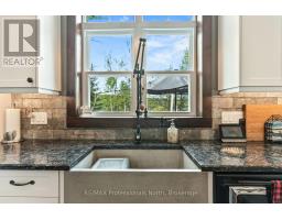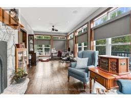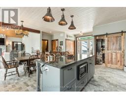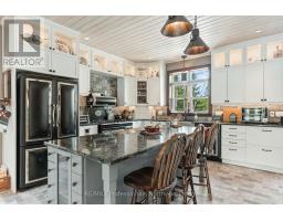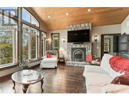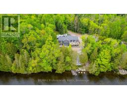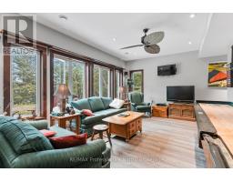 A must see custom built waterfront home on 3 lake chain: This thoughtfully designed, finished and decorated, 4 Bedrooms/3 bathroom home has 2 stone propane F.P.s/2 laundryrooms/Custom Kitchen/Lower level breakfast nook, upstairs and downstairs master B.R.s w/walk-in closets, ensuites and walk-outs! The MAIN level features custom trim and doors, 9 foot and vaulted pine ceilings. hardwood floors and porcelain flooring! Livingroom, sunroom/den, laundryroom, bathroom, custom kitchen w/island/pantry and master BR/ensuite & walk-in closet complete this stunning main floor. Step outside onto the expansive deck, from sunroom, dining area or master BR which overlooks the lake, and is perfect for hosting large summer events or relaxing as you enjoy the view of Pine Lake. The LOWER level is fully finished, offering recreation room, breakfast area and 4 pce. bath, 3 BRs (2 with walk-outs, 1 with ensuite)with easy access to the landscaped stone patio. The lower level provides a great separate and private area for family or guests. Security system. Central Vac. and speakers strategically located outside and inside for music lovers! Gently sloped lot with 200 feet of frontage and 1.94 acres. The patio and waterfront area is landscaped and stepped with stone to the waterfront area and ready for a dock installation. Propane heating, 2 propane fps up and propane and in-floor heating down. This property is located on a great corridor for people who enjoy walking, jogging or biking and is within walking distance to the community of West Guilford. Golfing minutes away. Haliburton 14 minutes away. Sir Sams skiing close by. A perfect blend of comfort, warmth and taste! (id:50886)