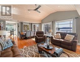 Discover the ultimate in Haliburton Lake luxury living with this exceptional waterfront home for sale in the heart of cottage country. This stunning year-round residence or getaway offers 2,850 sq. ft. of refined living space on a level, treed 1.1-acre lot with 100 feet of sandy shoreline and crystal-clear water - perfect for swimming, boating, and fishing. Enjoy panoramic lake views, tranquil sunrise vistas, and the rare combination of shallow entry and deep water off the dock. The 4+1 bedroom, 3 bathroom layout features cathedral ceilings, hardwood floors, two propane fireplaces, and multiple walkouts to a 60-foot lakeside patio ideal for entertaining. The chef's kitchen, open-concept design, and bright living areas make this home ideal for hosting family and friends. Outside, you'll find beautiful perennial gardens, a fitness/games room, and a 3-car garage (one bay insulated and heated). Comfort features include central air, central vac, high-efficiency propane furnace, and a backup generator for peace of mind. This Haliburton waterfront property is located on one of the area's most prestigious lakes, offering privacy, easy year-round access, and endless recreational opportunities. A rare opportunity in Haliburton real estate - schedule your private showing today and experience lakeside luxury at its finest. (id:50886)