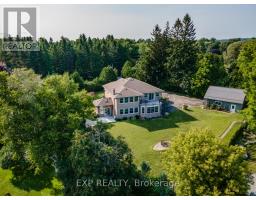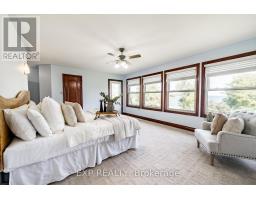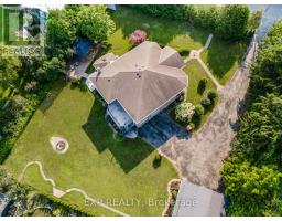 Welcome to this elegant all-brick home offering 4 bedrooms and 3 bathrooms. While not directly on the water, it showcases stunning panoramic views of Lake Ontario, all without the high cost, erosion concerns, or property taxes associated with waterfront living. Step inside to a grand front entry and enjoy the warmth of ceramic and bamboo flooring throughout. The luxurious kitchen features a large island, dual pantries, and stainless steel appliances, flowing effortlessly into the living and dining rooms. A cozy family room with fireplace, bright three-season sunroom, screened porch, and a convenient 2-piece bath make the main floor ideal for both everyday living and entertaining. Upstairs, the primary suite is a peaceful retreat, complete with a private balcony and a spa-inspired 5-piece ensuite, perfect for your morning coffee or unwinding at night. Three additional bedrooms, a stylish 4-piece bath, and a bonus family room with wet bar and balcony access complete the upper level. Outside, enjoy paved parking, an attached two-car garage, and a detached double garage with loft storage ideal for a workshop, home office, guest suite, or future living space. Located just minutes from the 401, this home is perfect for those seeking space, views, and a peaceful lifestyle without sacrificing convenience. (id:50886)