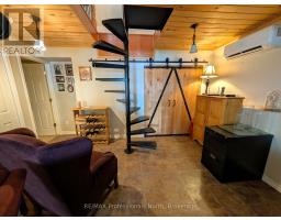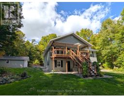 Welcome to 1173 Spring Lake Rd, located in the unorganized Township of Lount, on sought after Spring Lake in the beautiful Almaguin Highlands. The Lake is spring feed, very clean, approximately 70% crown land, and has a public access just minutes away. The property is amazing as it draws you in right from the private entrance, the beautiful landscaping and gardens, child friendly sandy shoreline, the many magnificent views of the lake from the deck, the fire pit, relaxing at the Saw Mill Structure Bunkie, taking in the calm of the lake from the waters edge or sitting out on the dock. The 2 bedroom, 2 bath home is well maintained and has the comfort and charm of living on the water. The main floor features a spacious living room with British Fires electric heater, open concept kitchen & dining area with walkout to deck, 2 bedrooms, and 4 pc bath. Heading to the lower level via the black accented spiral staircase; it offers a large rec room with walkout and certified Pacific Energy woodstove for those cooler nights, a 3 pc bathroom, workshop with walkout, laundry/storage room, and potential for a 3rd bedroom. The home is heated by a F/A propane furnace, and a ductless heat pump on both levels for year round comfort. Home was built in 2008, addition in 2011, many upgrades include: brand new custom kitchen with granite counter tops 2025. main floor bathroom 2024, upgraded insulation R60 in ceiling & R28 in walls, and new exterior doors in 2024. Large detached 2 car garage for your vehicle and your toys. Dug well with filter and U.V. system, and lake water pump for watering the gardens. Great area for the outdoor enthusiasts including boating, hiking, swimming, 4 wheeling, and you're right next to the snowmobile trails. There is so much to appreciate here... it's well worth the look!! (id:50886)