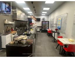 A prime turnkey restaurant opportunity in a fast-growing corridor. This beautifully set-up restaurant was fully renovated approximately four years ago and has been maintained in excellent condition ever since. The space offers a modern, efficient layout featuring a rare 16-foot commercial hood, shawarma grills, and many more well-kept kitchen components, all in immaculate clean condition, along with a large walk-in fridge and generous prep and storage areas. This provides a turnkey-ready setup that allows a new owner to begin operating immediately. Surround yourself with an established, vibrant food strip featuring Burrito Boyz, K&B Sushi, Scotty Bon's Caribbean Grill, and North of Brooklyn Pizzeria, in a rapidly growing corridor supported by strong surrounding businesses, new high-rise residential developments, and a major Longo's opening directly across the street. This combination drives consistent foot traffic and offers exceptional exposure for fast-food and quick-service restaurant concepts, as well as takeout and delivery operations through Uber Eats and such. The new owners have the flexibility to introduce an entirely new menu and brand, or to continue the existing concept with complete A-to-Z training for a seamless takeover. The infrastructure and equipment support a wide range of culinary operations, making this an adaptable and practical choice for both established operators and those looking to expand. (id:50886)