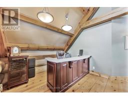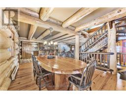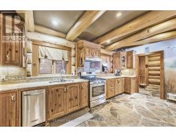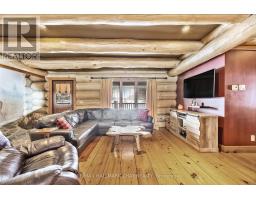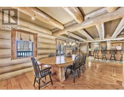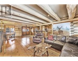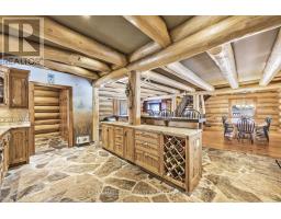Welcome to 118 Highland Drive, Oro-Medonte. Discover the charm and craftsmanship of this stunning log home in the heart of Horseshoe Valley. Featured in the movie The Christmas Chronicles starring Kurt Russell, this home radiates warmth and comfort, complemented by award-winning landscaping and a breathtaking 3-tier pond a tranquil highlight of the property. Step inside to a spacious foyer with tile flooring which leads into a cozy yet expansive rec room with rich hardwood floors. This level also features a beautiful wet bar, a comfortable bedroom, and a 4-piece bathroom, ideal for entertaining or hosting guests.The open-concept main floor is designed for modern living. The kitchen dazzles with granite countertops, stainless steel appliances, and a breakfast bar, flowing effortlessly into the dining and living room. A walk-in pantry with a built-in freezer and second fridge provides exceptional storage, while a stylish powder room completes this level.The second floor offers two generously sized bedrooms, each with its own ensuite. The primary suite boasts a walkout to a private balcony overlooking the backyard and includes a convenient laundry area. A bright office space and soaring cathedral ceilings with wood beams enhance the airy ambiance of the home.The heated garage, complete with an entertainment room above, blends utility with style. Outdoor living is equally impressive, with multiple walkouts to covered porches, including a wrap-around porch and private balconiesperfect for soaking in the peaceful surroundings. You will love the cleanliness and efficiency of the water radiators and in-floor heating, ensuring consistent warmth and a clean, comfortable atmosphere throughout.Situated just one minute from Vetta Nordic Spa, five minutes from Horseshoe Valley Resort, and close to Craighurst amenities and major highways, this property offers a harmonious blend of natural beauty and unmatched convenience. (id:50886)
