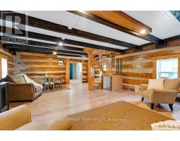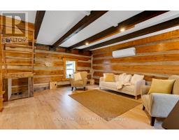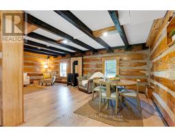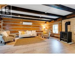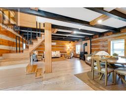 Step into timeless charm and modern comfort with this beautifully restored 1830s log home, located in the historic village of Merrickville. Known for its vibrant arts scene, quaint shops, and scenic waterways, Merrickville offers a unique blend of small-town charm and rich Canadian heritage and this exceptional property fits right in. Newly renovated , this spacious 2-bedroom, 1.5-bath home offers a seamless blend of original character and contemporary living. The heart of the home is a stunning new addition that enhances both form and function. Inside, you'll find exposed hand-hewn log walls, rustic beam accents, with a warm welcoming ambiance throughout. The custom-designed kitchen features modern cabinetry, quartz countertops, and updated appliances all perfectly balanced by the timeless charm of the log interior. The bright, open-concept living and dining area is ideal for both everyday living and entertaining. A conveniently located powder room and main floor laundry area adds modern convenience without compromising the historic character. Upstairs, two bedrooms provide cozy retreats, while the full bathroom is tastefully renovated with classic finishes that nod to the homes roots. Every detail has been thoughtfully curated to maintain the authenticity of the outside. Enjoy a beautifully maintained backyard featuring a concrete patio surrounded by perennial gardens and mature greenery. Two large sheds offer ample outdoor storage. Impressive 26 x 30 detached insulated garage/workshop includes an 8 x 8 workbench, full sub panel, new garage door, and automatic opener, perfect for creative projects or a home-based business. Additional upgrades include a steel roof, energy-efficient heat pump, cozy propane stove for those cooler evenings, and fully updated plumbing, electrical, and septic tank. Just minutes to Merrickville's historic downtown, restaurants, shops and the Rideau Canal, this turnkey home is perfect for those seeking character and comfort. (id:50886)