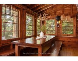 Let me tell you about a place most people will never get the chance to call their own. A private bay. More than 4 acres. Nearly 1,000 feet of shoreline wrapping around a peninsula-like point. Surrounded by water, the horizon glows with west-facing sunsets that stop you in your tracks. A long, private driveway leads you in, and suddenly, the rest of the world falls away. The shoreline is everything you hope Muskoka can be - hard-packed sand, a vintage boathouse at the waters edge, and wooded trails that wind through the trees behind you. It feels untouched, timeless, almost as if the lake itself belongs to you. And then there's the cottage. Wrapped in cedar log siding, it carries that nostalgic character only decades of summers can create. Five bedrooms. A wood-burning fireplace. And a Muskoka room that quickly becomes the heart of your days. Morning coffee you never want to rush. A book left open because the view distracted you. Family meals that carry on longer than planned. Rainy nights that somehow turn into just one more game. These are the kinds of moments you'll catch yourself replaying, again and again. Step outside to the lakeside deck and the view opens wide. It's uninterrupted, expansive, unforgettable. Here, you don't just unplug. You return to yourself. Everything stays. From the tools in the shed to the chairs on the deck - even the boat at the dock. You turn the key, and its already yours. This isn't just real estate. Its legacy. The same family has held this place since the 1950s. The road leading in bears their name. For nearly 70 summers, this piece of Muskoka has been the backdrop for their stories, their laughter, their memories. Now, for the first time in over six decades, its ready for someone new. Someone who understands that the best places aren't just owned, they're cared for, lived in, and passed on. Maybe that someone is you. (id:50886)