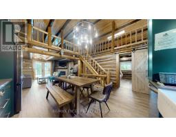 Dreaming Of A Gorgeous Chalet Style Cottage That Is Year Round And Fully Made Of Beautifully Crafted Round Logs With Extra Insulation, Flexible Chinking Which Enhanced Looking? Maybe With A Gourmet Country Style Kitchen With Fireclay Farmhouse Apron Sink & Quartz Counter And Plenty Of Professionally Designed Hardwood Cabinets; What If Is With A Huge Loft That Fits Two Queen Beds With A Walk-Out Balcony That Looks Over The Peaceful Lake St. Peter And A Play Area That All Kids And Adults Enjoy With Fun Game Times! Two Great Size Bedrooms On Ground Floor, With The Primary Overlooking The Lake And Walk Out To The Sun Filling Extra Large Deck Featuring Dura-Deck Surface Which Requires No Maintenance That Last Forever! What About A Walk Out Basement That Features A Large Recreation And An Amazing Family Room With Bar Table, Arcade And Foosball Table! A Backyard With Impressive Armour Stone Landscapes Stretching To The Shoreline And A Well Size Yet Private Sand Beach For Some Playful Fun Fill Afternoon! A Purposely Built Outdoor Shower And Outhouse To Keep The Watery & Sandy Fun Out Clean Before Returning To The Relaxing Indoor Leisure; Equipped With Water & Sewage Pumps As Well As UV Filtration System To Keep The Family Safe And Clean And Efficient Propane Gas Furnace To Keep The Cottage Nice And Cozy All Year Around; How About Two Sheds And A Carport That Offers Extra Spaces For Toys, Miscellaneous, Or Floats & Boats And Winter Gears? Situated Just About 30 Minutes To (Left) The Historic Bancroft For Shopping And Other Amenities Or (Right) To Get To The East Gate Of The Marvelous Algonquin Park! Imagine A Summer Fire Pit Marshmallow Night Under A Full Sky Stars Bath Accompanied With The Quiet Lake Peace, Or Skate Dance On Ice Into The White Winter Paradise This Provincially Regulated Lake St. Peter Could Offer! What Else Is In Your Mind Of A Perfect Cottage For Pure Joy And Pleasure Living? Possibly Just a Booking To Visit Could Help You Easily Get To Your Dream! (id:50886)