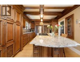 This 1920's Edwardian 4 Square style 3 bedrm 2.5 sty, is well positioned on a large comer lot in the heart of Historic Olde Walkerville, backs onto butterfly alley, is one block South of Willistead Park & overlooks the Low Martin home. The unique period 3 season sunroom leads to a foyer that opens into a spacious entrance hallway. Coffered ceilings are featured in the spacious living room w/ sitting area & gas f/p, in the formal dining room, and in the beautiful custom kit w/island, eating bar, quartz counters, & many B/1 features ( 2 dishwashers, 2 ovens, warming drawer, gas countertop stove, pantry). Special features include period french doors w/ bevel glass; very Irg master bedrm w/ his & her closets & lpc ensuite; 2nd flr balcony; walk up to 3rd flr attic ; 200 amp elec, copper eaves troughs & downspouts; cosy rear covered deck, overlooking private fenced rear yard. The 2.5 car garage has a automatic double door entrance from the alley and a double door opening to the backyard. (id:50886)