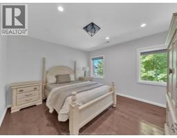 STUNNING CUSTOM ESTATE ON PRESTIGIOUS RIVERSIDE DRIVE! Poised along Windsor’s iconic riverfront, just steps from the sparkling waterfront and scenic Ganatchio Trail, this architectural masterpiece embodies sophistication and comfort. Offering over 3000 sq ft above grade plus a fully finished lower level, this 4 bdrm, 4.5 bath residence is nestled on a private, tree-lined lot. Inside, soaring ceilings, expansive windows, rich hardwood, polished porcelain, designer fixtures and pot lighting create an atmosphere of refined elegance. The gourmet chef’s kitchen, complete with quartz counters, a grand island, walk-in pantry and state-of-the-art appliances, flows seamlessly into sundrenched living, dining and family rooms anchored by a statement fireplace. The upper level showcases three generous bedrooms, each with its own ensuite and walk-in closet, including a lavish primary retreat with spa-inspired ensuite, private balcony, and priceless views of Riverside Drive. The fully finished lower level offers an entertainer’s haven with family and rec rooms, chic second kitchen, bedroom, bath, laundry and grade entrance—ideal for multi-generational living. Outdoors, enjoy a resort style backyard featuring a covered porch, hot tub, outdoor kitchen and lush landscaping. With dual heating/cooling, two garages and an extra-wide drive, this turnkey residence delivers the ultimate in Windsor’s riverfront luxury living. Make this home yours, call today for a private tour. (id:50886)