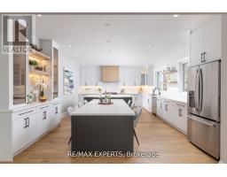 Welcome to this absolutely stunning, custom-built masterpiece! This luxurious 4-bedroom, 5-bathroom home spans over 3,000sqft to a modern layout with impressive 9-ft ceilings and sophisticated finishes. The heart of the home, a chef's dream kitchen, boasts a spacious oversized island with a custom built-in dining table extension and sleek quartz countertops. Premium 7.5-inch oak hardwood floors and large-format porcelain tiles add sophistication to every room. Expansive double garden doors and windows on the main bring in an abundance of natural light, leading to a W/O wooden deck perfect for entertaining. Thoughtfully designed with custom millwork, accent walls, a wet bar, wine station, and beverage center, this home exudes both style and functionality. Each bedroom offers its own private ensuite with heated floors & W/I closets, ensuring ultimate comfort and convenience. Additional highlights include a main-floor laundry room, 4-car parking including a spacious 2-car garage. (id:50886)