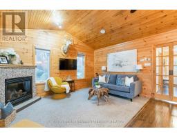 Top 5 Reasons You Will Love This Home: 1) Step into a warm and inviting cabin with cathedral ceilings, an open-concept kitchen, dining, and living area, and a refaced gas fireplace surrounded by natural stone (November 2024), delivering the perfect mix of rustic charm and modern comfort for an ideal year-round escape 2) Enjoy the benefits of major recent upgrades (approximately $75K in 2024-2025) including a brand-new roof (new struts, shingles, and plywood, November 2025), a fully renovated bathroom (November 2024), and a newly installed four-season sunroom featuring insulation, heat, air conditioning venting, and new flooring, with serene pond views 3) Relax in your private backyard oasis overlooking a tranquil pond, perfect for morning coffee, sunset reflections, or quiet evenings surrounded by nature's beauty 4) Located in the prestigious CountryLife Resort, you'll enjoy incredible amenities including indoor and outdoor pools, tennis and pickleball courts, mini golf, a playground, a splash pad, a bouncy trampoline, a basketball court, a recreation centre, and scenic walking paths leading straight to the sandy shores of Wasaga Beach 5) Walk or bike to local coffee shops, grocery stores, a library, and restaurants, with Collingwood, Blue Mountain, and Barrie just a short drive away, perfect for those seeking a weekend retreat or a four-season home. 946 above grade sq.ft. (id:50886)