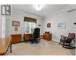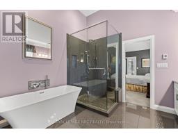 Situated on prestigious David Lowrey Court, beneath the breathtaking Niagara Escarpment, this exceptional custom-built Gatta Homes bungalow offers over 3,100 sq. ft. of refined living space with impeccable craftsmanship and timeless sophistication.Upon entry, an elegant formal living room welcomes you with coffered ceilings and serene garden views-an inviting space that sets the tone for the home's refined design. Beyond, the open-concept great room impresses with vaulted ceilings, skylights, and floor-to-ceiling windows that bathe the space in natural light. Anchored by a sleek gas fireplace, this area flows effortlessly into the chef's kitchen, appointed with Cambria and Caesarstone countertops, bespoke cabinetry, premium appliances, and a generous island perfect for entertaining. From here, sliding glass doors open to a spacious screened lanai, offering a seamless transition between indoor and outdoor living-ideal for relaxed evenings or summer gatherings.The primary suite is a true retreat featuring a five-piece spa-inspired ensuite, walk-in closet, and a second private screened lanai overlooking lush gardens. A second main-floor bedroom with ensuite bath, a powder room, and a stylish mudroom/laundry area with custom built-ins complete the main level.An elegant glass railing leads to the finished lower level, designed for versatility and comfort with a spacious recreation room, home office, two additional bedrooms, and a full bath.Set on a private 74' x 154' lot, the exterior showcases mature trees, manicured gardens, and a low-maintenance Trex deck perfect for outdoor entertaining. Additional highlights include heated bathroom floors, air exchanger with HEPA filtration, covered eaves, a two-car garage with lift for a third vehicle, and a circular concrete driveway with parking for five. Located just minutes from Old Town Niagara-on-the-Lake, award-winning wineries, golf, and the QEW, this residence epitomizes Niagara luxury living at its finest. (id:50886)