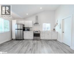 LEASE THIS FULLY RENOVATED BUNGALOW ON A LARGE, PRIVATE LOT JUST STEPS FROM THE BEACH! This move-in ready bungalow is available for lease on a spacious 75 x 200 ft lot in a quiet, tree-lined neighbourhood of Tiny Township, just a short walk to Edmore Beach and a quick drive to Wasaga Beach. Set back from the road and surrounded by mature trees, the property provides a peaceful backdrop with plenty of space to enjoy the outdoors. Extensively renovated with a modernized interior, the home offers a bright open-concept layout with vaulted ceilings, pot lights, and low-maintenance tile flooring. The stylish kitchen features white cabinetry, quartz countertops, stainless steel appliances, and a gas stove, while the inviting living room is anchored by a propane fireplace set into a floor-to-ceiling marble-look surround. Three comfortable bedrooms include a primary suite with a private 3-piece ensuite, complemented by a second updated 3-piece bathroom. Whether it’s mornings at the beach, evenings by the cozy fireplace, or day-to-day living, this updated #HomeToStay is ready to welcome you. (id:50886)