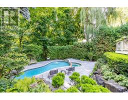 A rare opportunity to own a secluded ravine residence, gracefully set back from the street on an expansive 1/2 acre+ lot in one of Toronto's most private enclaves. Expansive, L-shaped lot, with gunite pool set to the side, and a home with 5,200+ square feet above grade that blends transitional design with timeless style. Surrounded by mature trees & a picturesque ravine, this estate offers the feeling of country living. Grand interior foyer with two-storey south windows, flagstone floors, and a sweeping staircase. The main floor is designed to entertain from formal garden views, gracious living and dining rooms, a chef's kitchen featuring an atrium skylight, Tahj Mahal quartzite island, walnut details, and top-of-the-line appliances, connecting to a sun-filled breakfast room with fireplace and Nano doors that open to the outside. Family room with detailed millwork, walk out to a deck and panoramic views over the ravine and pool. Main floor also includes large home office off the side hallway, powder room, guest/nanny bedroom, 3-piece bath, laundry and mud room with access to the double garage. Second floor is expansive with five generous sized bedrooms, three bathrooms including a primary suite with sitting area, fireplace, spa-inspired ensuite, and tranquil views of the gardens and ravine. Lower level features upgraded mechanics, bright, playful recreation room with built-ins, cozy reading nook, fireplace, 3-piece bath, and walk-out access to the pool. The exquisite garden is designed by landscape architect Ron Holbrook, featured in Canadian House & Home and included in local garden tours. Highlights include a charming gazebo, potter's shed, large grass area for children to play, a deck ideal for al fresco dining and summer entertaining with sun awning, gunite pool with hot tub-surrounded by complete privacy, is embraced by the ravine and lush landscaping. Unmatched privacy so close to top schools, walk to Yonge Street amenities, and steps to Rosedale Golf Club. (id:50886)