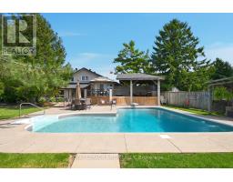 12 Fuller Crescent blends scale, privacy, and sophistication across nearly 4,800 sq. ft. of finished living space, set on an impressive 207-foot deep lot. Arriving here feels intentional - the quiet circle, the mature trees, the beautifully landscaped grounds, all setting the stage for a home designed for those who appreciate both elegance and ease. The backyard is a private resort where an inground pool, expansive deck, patio, and a serene pond come together to create a truly elevated outdoor living experience. Whether hosting gatherings or enjoying quiet mornings, this space delivers a remarkable level of tranquility and exclusivity. Inside, thoughtful design and generous proportions define every room. The main floor offers an elegant flow anchored by a grand great room, a kitchen that stretches into the outdoor space, a formal living area spanning nearly 30 feet, a dedicated office, and the convenience of main floor laundry. Large windows and seamless sightlines enhance the sense of openness and natural light. The second level offers yet another private getaway with a spacious primary suite featuring a spa-inspired 5-piece ensuite. Three additional bedrooms, another full bathroom, and a comfortable sitting area ensure ample space for family and guests.The fully finished lower level elevates the property even further with a complete in-law suite. A full kitchen, living area, bedroom, and full bathroom. This level caters effortlessly to multigenerational living, guests, or long term accommodations. (id:50886)
