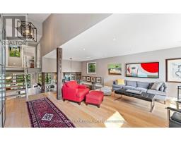Tucked away on a quiet tree-lined street, this bright and spacious modern backsplit blends luxury and comfort in every detail. Truly unique and unassuming, rebuilt top to bottom, it's filled with natural light and features soaring ceilings, a striking floating staircase, and a chef's kitchen with an 11-ft island, marble backsplash, and top-tier appliances. The open layout flows effortlessly to a cozy family room with wood-burning fireplace and walkout to a year-round, private, pool sized backyard - your own hidden oasis. Two bedrooms up, including a luxe primary suite with ensuite & W/I closet, plus main-floor office/3rd bedroom. Finished lower level with rec room, Murphy bed, 2 PC bath & spacious laundry. Direct access from the 2-car garage plus plenty of storage spaces throughout. (id:50886)