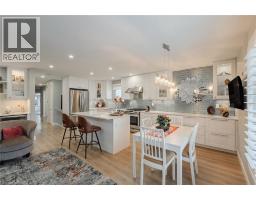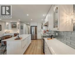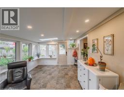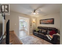 Welcome to this stunning, move-in ready, semi-detached raised bungalow nestled on a quiet court in Brantford's desirable Mayfair neighbourhood. This home offers parking for two and a carport. The main floor has been transformed, featuring a spacious open-concept kitchen, living room, bar, and eating area. The completely renovated kitchen is a chef's dream with a large island, quartz countertops, a tiled backsplash, extensive cabinet lighting, soft-close cabinets, and some stylish glass-door cabinets with interior lighting. Throughout the home, you'll find updated interior doors (eight feet in height) and trim, as well as a mix of California-style shutters, electric roller shade, and blinds. This level includes two bedrooms, ample closets, a four-piece bathroom with a solar-tube skylight, and a versatile separate room (perfect for a home office or TV room) that leads to the gorgeous, all-season sunroom. The sunroom is a bright retreat, resplendent with windows, two skylights, and rear access to the private yard. The lower level adds significant living space with a large recreation room, a three-piece bathroom, a laundry room, a storage room, and an additional room currently used as a bedroom. Outside, the large rear yard is an oasis featuring beautiful perennial gardens, a covered pavilion, a shed, and a patio, perfect for entertaining. (id:50886)