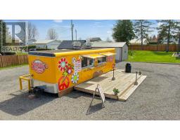 TURN-KEY SEASONAL BUSINESS WITH COMMERCIAL & RESIDENTIAL ZONING! Shaggy's Fry Shack is a profitable, established, turnkey business located just 2 minutes east of Prescott on County Road 2. Positioned along the high-visibility Seaway Corridor, the property sits on approx. 0.6 acres and is ready for immediate operation. The pristine food truck is fully equipped with: Spotless prep area with double sink, New flooring, 3 double-fat fryers, Grill top & cook top, Countertop unit with cooler, Stove & 2 refrigerators, Natural gas 100-amp service. A large gazebo offers shaded dining with 6 picnic tables and a portable restroom for patrons. The property includes three additional vinyl-sided, metal-roofed outbuildings: Building 1: Staff washroom, potato peeler, stockroom, 2 freezers, refrigerator/freezer combo. Building 2: 3 backup refrigerators + freezer. Building 3: Lawn equipment, jack wheels, misc. storage. Other features include: Septic system, Large on-site garbage bin (bi-weekly pick-up), Fenced west side. Zoned Commercial and Residential, the property offers excellent flexibility-an owner could convert one of the sheds into a living space, making this an affordable and convenient live/work setup. Operate 5-6 months of the year and enjoy a well-built, clean, and reputable business with room to grow. All major work has been completed and the setup is immaculate-just step in and carry on the vision. (id:50886)