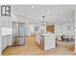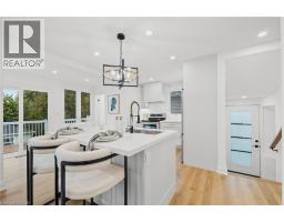 A restoration of one of Breslau's original homes, this property has features and charm that sets it apart. Professionally renovated, this 3 bed, 3 bath is loaded with high end, modern design both inside and out. Make your entrance into the sunroom which is the perfect entry way/mud room. Open concept living, the living room features bay windows, a dining room and a stunning kitchen with custom and high end design. This kitchen features an island with a breakfast bar, quartz for both the counters and backsplash, a beverage bar, and a sliding patio door leading out the balcony, perfect for BBQ. Powder room on the main floor. Upstairs features 3 bedrooms and a luxury designed bathroom. The door leading to the roof off the primary bedroom leaves possibility to create a private balcony. The second floor luxury bathroom features heated floors, a curbless shower and a soaker tub with a LED mirror and under-cabinet lighting. The basement is fully finished giving you a large Rec room and a 3pc bathroom. The laundry room has been finished for comfort and maximized storage. The exterior features an interlock pathway from the driveway to backyard. Not one but 2 garages with new roofs on both as well as a shed in the backyard. NEW Furnace & NEW windows everywhere. Multi-Use Zoning. This home was brought back to life and redesigned to maximize functionality in one of the most desired areas to live. The perfect location to live in quiet but still close to highways for commuting. Within minutes to Waterloo, Kitchener, Cambridge and Guelph, school nearby, library, parks & more. A perfect home to raise a family. Properties like these don't hit the market often. Book your showing today! (id:50886)