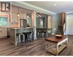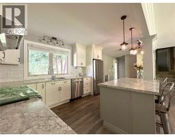Discover this updated home nestled at the edge of town, offering a peaceful retreat while remaining close to schools, shopping, and recreational facilities. Set on a large corner lot, this residence boasts 3 bedrooms and 2 baths along with a lower-level family room that provides extra living space. Stylish updates throughout include an open concept living area with new vinyl plank flooring (2024) plus a large picture window that floods the space with natural light. The updated kitchen boasts never-used stainless steel appliances (including a wine cooler), custom lighting, pantry with pull out shelving, plus a generous island - perfect for large gatherings. The lower level offers a family room with 2 large windows (2' x 5'), an additional bathroom, laundry and crawl space storage. Outside, enjoy beautifully landscaped grounds with perennials, hydrangeas, ground cover and mature trees. Private backyard complete with gas BBQ, a stone patio and fire pit, ideal for family fun and relaxing evenings. The 24' x 12' drive through garage has bay doors at each end and convenient driveway access from two streets, with a level driveway at the rear of the home for level access into the home via the backyard entrance. Recent updates include plumbing, air conditioning (2022) and an on-demand hot water heater (2023), and professionally installed R50 insulation and venting in the attic. Great house in a great location...don't miss this one! (id:50886)