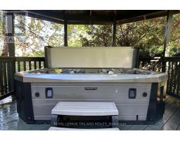 The Victoria: A Century Home Oasis Nestled on a charming street in Delaware, Ontario, The Victoria is a beautifully renovated century home surrounded by a lush, park-like yard backing onto a peaceful woodlot. This private oasis blends historic charm with modern luxury, offering a tranquil retreat just minutes from local conveniences. Outdoor living shines here with double decks, a covered hot tub, and a stunning 20x40 concrete saltwater pool with stone coping. A timber-framed playhouse, firepit, and beautifully landscaped grounds add to the serene, family-friendly setting. A long paving-stone driveway, lined with spruce and flowering trees, leads to a heated two-car garage and pool equipment room, offering ample parking for guests. Inside, the home has been thoughtfully updated while preserving its original character. The gourmet kitchen features garden-view windows, stone floors, dovetail drawers, wooden cabinetry, and a massive granite island. A two-tier family room boasts exposed wood rafters and brick accents, while the formal dining room adds elegance with a crystal chandelier and pocket doors. Both living and family rooms include updated natural gas fireplaces, and a convenient powder room completes the main floor. Upstairs, three bedrooms and a full bath offer comfort and privacy. The primary retreat includes a walk-in closet, ensuite with jetted tub, and a private porch overlooking the front lawn. The finished lower level includes a games/exercise area, an additional bedroom, and a two-piece bath ideal for guests. Delaware offers the charm of small-town living with access to top-rated schools, new amenities, grocery stores, restaurants, parks, rinks, golf courses, and more all just a short walk or drive away.12 Victoria Street is a rare opportunity to own a timeless home with every modern convenience in a vibrant, welcoming community. (id:50886)