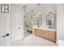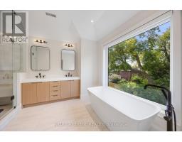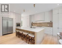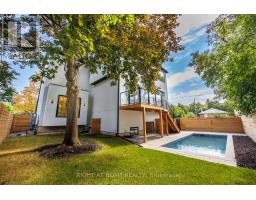 This expertly designed, fully turn-key custom home offers four spacious bedrooms and luxury finishes throughout. Located on an ultra-quiet, family-friendly street, the home features 10-ft main floor ceilings, and a walk-out basement with separate side entrance ideal for future rental or in-law suite.The chef's kitchen includes a 42" KitchenAid fridge, Fisher & Paykel induction cooktop, custom stone backsplash, custom designed rounded hood, and generous storage. The open-concept living and dining space is perfect for entertaining, featuring a custom arched bar with stone countertops.A custom home office with floor-to-ceiling library millwork sits just off the foyer, enclosed by reeded glass pocket doors and overlooking the serene, landscaped backyard. Upstairs, the oversized primary suite offers a fully customized walk-in closet and a spa-like ensuite with marble accents, soaker tub, heated floors, double vanity, and a glass shower with floating bench.Outside, enjoy a private backyard retreat complete with a beautifully designed saltwater pool, extensive landscaping, and a mature Norway Maple tree for natural shade. The large front yard provides a rare opportunity for additional recreational space or a future sport court.This home also includes over $10,000 in custom window coverings, an electric vehicle charger, heated floors in both the front foyer and the primary ensuite, a double car garage, and an oversized driveway with multiple car parking. Set back generously with a large sugar maple in the front yard and full separation between the basement and main living areas, this home is designed for both comfort and versatile living. (id:50886)