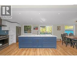 Welcome to this stunning 3+2 bedroom, 2 bath updated bungalow perched on Grimsby’s breathtaking escarpment — the perfect blend of in-town convenience and country living. Set on a spacious 2/3 of an acre lot backing onto woodlands and open fields, this home offers peace, privacy, and picturesque views from every angle. Step outside to a gorgeous deck overlooking the pool and massive backyard with century old willow trees, perfect for entertaining around a campfire or relaxing in nature’s backdrop. The bright, open-concept interior features a modern chef-inspired kitchen with quartz counters, multiple sinks and workstations, and an oversized eat-at island designed for both function and style. The cozy family room is anchored by a new high-end gas fireplace, while the bedrooms have been thoughtfully redone with upgrades including custom maple cabinetry, new flooring, and expanded closet space — featuring 8 ft of Pax wardrobes and a new 5 ft built-in. The bathroom has been fully renovated with a step-in glass shower and electric skylight, and every appliance in the home has been replaced. Additional highlights include a newly installed water treatment system a second 4500g cistern, new eaves, a bright sunroom/mudroom, a modern heated garage/workshop with storage loft, a large drive shed, and parking for 8–10 vehicles. Just steps from the Bruce Trail and Adam Dopko Trails, this property offers the best of both worlds — modern comfort surrounded by natural beauty. (id:50886)
