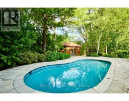 Welcome to the Enclaves of Mapleridge. Your Private Retreat in the Heart of Liverpool, Pickering. This stunning custom-built home is tucked away on a quiet cul-de-sac and sits on a premium pie-shaped lot (66x148x194), nearly half an acre with no rear neighbours and over 5,000 sq ft of finished living space. Step into a grand foyer with soaring ceilings and flow through sun-filled, oversized rooms. The gourmet chefs kitchen is perfect for hosting, while the elegant spiral staircase leads to 4 spacious bedrooms. The primary suite features double-door entry, bay window with forest views, custom cabinetry, and a luxurious ensuite with soaker tub, bidet, double vanity, walk-in shower, and dressing area. Enjoy your own resort-style backyard oasis with manicured gardens, tranquil pond with waterfall and fountains, and a heated saltwater inground pool. The finished basement includes a separate entrance, high ceilings, 1 bedroom (space for more), oak bar, and 10-person sauna. Extra highlights: 3-car garage+6 parking on driveway, 2 sunrooms, home office, heated ceramic floors, built-in safe, custom cabinetry throughout, sprinkler system, pool equipment room, 200 amps+separate sauna panel, high-performance basement drainage, cold & storage rooms. Close to Top public & private schools, GO Train, 401/407, trails, tennis courts & shopping. This is more than a home, it's a lifestyle in one of Pickering's most desirable communities *Check out the virtual tour* (id:50886)
