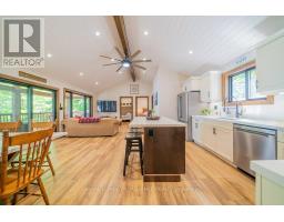 Welcome to Mississagaon , a spring water lake with its unique blue / green waters recognised for its quality features an unspoiled shorelines and a tranquil setting that is true Canadiana. Enjoy quiet paddleboarding or show off your wakeboarding skills. The deep waters offer will intrigue anglers and the swimming is second to none. Tucked into a quiet bay with panoramic views you will take it all in from 1202 Rocky Lane. A naturally landscaped setting opens up to a completely renovated cottage home completed between 2022-2024 with a walkout basement and and expansive covered deck with vaulted ceilings that you won't ever want to leave. Perfect for families, the space is arranged both indoors and out for families to enjoy. Attention to a large family room and kitchen area to the lower walkout out and its rec room are easy gathering spots for friends and family at all ages to gather. Four convenient bedrooms and bathrooms on each level provide privacy and utility. The outdoor space is unique and designed for family fun amongst mature trees and unique rock formations. Get the group together and enjoy the sandy beach volley court, or the grassy area for your favorite outdoor games. Pick up your putter as you head toward the water and challenge your golf skills on this tiered putting green that will surely be a source of stories and fun. At the water a large fire pit is a positioned to take in panoramic views as you look down the lake, At night the stars are spectacular and yours to enjoy in a private setting. Back to the dock where you can dip your toes in and appreciate your accomplishments. An additional lot a short walk from the property is included - a great spot to consider a build for extended families or that workshop you have always wanted. Convenient access to to local amenities, trail systems this is a must see property. Welcome to the Land O' Lakes and this unique property on a spectacular lake. (id:50886)
