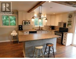 Unique 3 bdrm 2 bath raised bungalow. This nicely updated and well maintained home has no levels below grade. It is situated on a large L- shaped lot ( See photos for overhead view of lot with dimensions). The main level has an open concept kitchen and living room. The kitchen features lots of cupboards, and plenty of counter work area. There is a panoramic view with great site lines to the backyard. The main level also features two good sized bedrooms, and a four piece bath. Sliding doors from the kitchen access the raised deck which is the roof of the attached carport. The deck is a great area to relax or have dinner during the warm months. The deck also has stairs to access the backyard and patio area. Stairs from the kitchen accesses the lower floor. This area has the oversized primary bedroom. From the primary bedroom you can go out to the back patio via sliding doors. The lower area has a very large three piece bath which can be accessed from the family room and also from a door in bedroom. The lower level also has cozy family room , as well as a laundry area and partitioned room with furnace and hot water tank. The back yard is large, and has been very nicely landscaped and decorated. The detached single garage currently used as a work shop and storage. Behind the garage is the extended L-- portion of the property. Its a great area for kids, or dogs. You could possibly put a work shop or large shed, on this section ( if permitted). Plenty of room to construct a building for a home based business ( if legally permitted). Great for family get togethers or reunions. The home has had a number of updates i recent years-- electrical-2024, hotwater tank 2025, roof 2023. (id:50886)