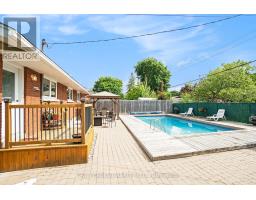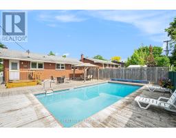 Welcome to 1208 Stanton Road! This all-brick bungalow features 3 bedrooms, 2 bathrooms, and a fully fenced backyard featuring an inground pool with gas heater, deck, stone patio, and garden shed. Main floor includes a refreshed kitchen with granite countertops, updated cabinetry, pot lighting, and space for dining, plus a living room, 3 bedrooms, and an updated full bathroom. Hardwood and tile flooring throughout with carpet in bedrooms. Finished basement offers a large recreation room, two-piece bath, laundry, and storage with durable laminate flooring. Recent updates: Stove & Dishwasher (~2022), Furnace & Central Air (~2018), Hot Water Tank (~2018), Pool Heater (~2019), Chimney work (~2020), Kitchen/Basement/Bathroom updates, Pool liner (~2021).Located near Kilreen Park with tennis courts, soccer field, splash pad, playground, and close to amenities including Ikea, Highway 417, Bayshore Mall, and Queensway Hospital. 24-hour irrevocable on offers. *Primary bedroom image has been digitally staged to illustrate an alternative furniture layout. (id:50886)