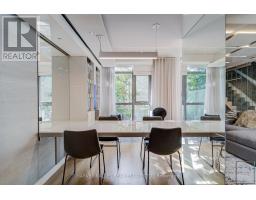 Sophisticated Urban Living in the Heart of King West. Experience the best of city living in this executive two-bedroom townhouse at The One Hotel / Thompson Residences, Condo building Blending style, functionality, and privacy, this rare offering is perfectly tailored for professionals who value refined design and the convenience of a private front entrance. Enter through the building or your own front terrace overlooking the tranquil reflection pond at One Hotel and Victoria Memorial Parka serene setting for entertaining or quiet relaxation. Inside, the open-concept living and dining area is bathed in natural light from floor-to-ceiling windows, with dual walkouts to the terrace. The designer kitchen features a large island and a temperature-controlled wine room, while a stylish powder room and in-suite laundry complete the main level. Upstairs, the primary suite offers a peaceful retreat with a walk-in closet, a spa-inspired five-piece ensuite, and a private balconythe perfect spot for your morning coffee. The second bedroom also includes its own ensuite, double closet, and balcony access. Additional features include one parking space and a locker. Residents enjoy access to premium amenities such as a state-of-the-art fitness centre, rooftop pool, and exclusive venues including Harriets Rooftop and Casa Madeira at The One Hotel. With public transit, boutique shopping, and some of Torontos best restaurants just steps away, this home embodies elevated urban living at its finest. (id:50886)