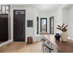 Discover a masterfully reimagined Victorian townhouse in the heart of Harbord Village, where history meets bold, modern design. With nearly 3,000 square feet of living space, this home brings both versatility and opportunity. The main level makes a statement with soaring 10-foot ceilings, oversized windows, and a dramatic fireplace. The chef's kitchen, equipped with Miele appliances, a waterfall island, and a built-in bar, is as functional as it is stylish. Thoughtful touches like a custom entry closet and discreet powder room elevate the space. The upper levels are designed with family living in mind, offering four sunlit bedrooms, each with custom closets. Skylights illuminate the expansive top-floor primary suite, which includes a spa-like five-piece ensuite with heated floors, a sprawling walk-in closet, and a flexible office space or dressing room. Additional features of this home include built-in speakers and a smart lighting system, which are seamlessly integrated throughout for an elevated living experience. Outside, landscaped gardens and two balconies provide peaceful outdoor scenes, with iconic CN Tower views. An automatic gate opens to your private parking space for additional convenience. Situated just steps from transit, parks, top schools, and vibrant shops and restaurants on the streets of Harbord and College, this home is a rare find in a coveted neighborhood. (id:50886)
