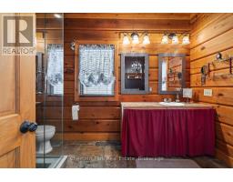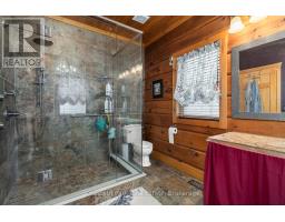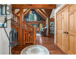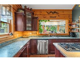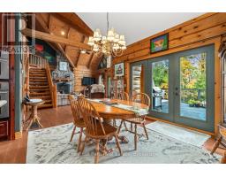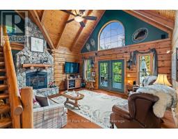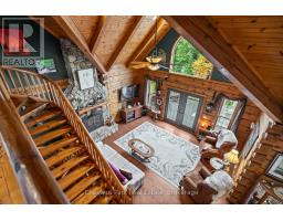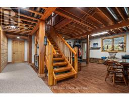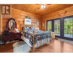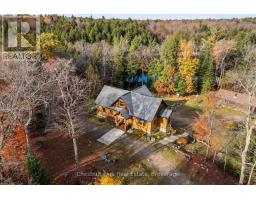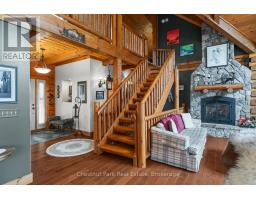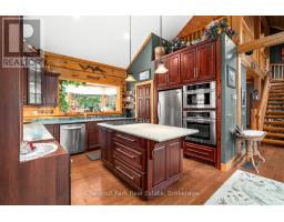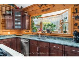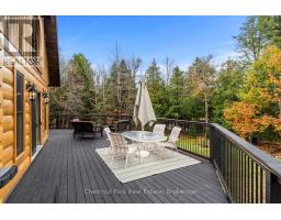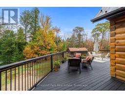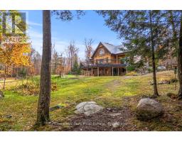Welcome to this one-of-a-kind True North log home, built in 2005 and nestled on just over 9 acres in the unorganized Township of Lount. With 350+ feet of frontage on Maeck Lake, this property blends seclusion, craftsmanship, and natural beauty. Arrive to exceptional curb appeal and the timeless charm of log construction. Beautiful landscaping surrounds the home, featuring man-made waterfalls, a spacious yard for kids or pets, and a treehouse for endless outdoor fun. A detached two-car garage with a second story above, offering ample storage. Inside, pride of ownership shines. The main floor features hardwood floors and a custom crafted, built in cabinetry by Cutters Edge in the Kitchen, Primary Bathroom, and Basement Bathroom, Built in JennAir oven, microwave, and Kitchen Aid fridge with JennAir gas cooktop, with a Silestone Island countertop. The open-concept living and dining area is warmed by a propane fireplace insert and opens to an expansive deck across the back lakeside, perfect for enjoying peaceful views. A loft overlooks the living room, ideal as an office, creative nook, or extra sleeping area. The main floor also includes laundry and a 3-piece bath with in-floor heat. The primary suite is a true retreat with built-in cabinetry, deck access, and a spa-inspired ensuite featuring an oversized shower and massaging jets. The lower level offers two additional bedrooms, a large rec room with a wood stove, 3-piece bathroom with heated floors and a walkout to a lower deck. Modern comforts include a drilled well, septic, propane heating, and a wired generator. Near the shoreline, a charming bunkie equipped with hydro and propane options. Providing guest space with a bedroom, wash area, loft, wood stove, and propane stove. With a sandy waterfront, private dock, and the freedom of unorganized living, this property is the perfect year-round home or Northern retreat. Over 9 acres of privacy, with trails to explore, 350 feet of waterfront, and endless possibilities! (id:50886)