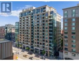 Discover urban living at its finest in this bright and modern 1-bedroom condo, perfectly situated in the heart of downtown Ottawa. This thoughtfully designed unit features hardwood floors throughout, a spacious open-concept living and dining area, and a well-sized bedroom with impressive floor-to-ceiling windows that flood the space with natural light. The good-sized balcony extends your living space outdoors, offering a private retreat to enjoy morning coffee or unwind in the evening. The kitchen is equipped with stainless steel appliances, granite countertops, and a functional island, making it ideal for cooking, entertaining, or working from home. Additional highlights include in-unit laundry, ample storage, and a smart layout that maximizes both comfort and functionality. The building offers amenities including a terrace with BBQ's and a stylish party room. Located just steps from the ByWard Market, University of Ottawa, Rideau Centre, LRT, shops, and restaurants, this condo offers the perfect blend of convenience and lifestyle. Ideal for first-time buyers, professionals, or investors looking for a prime downtown location. (id:50886)
