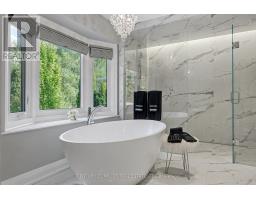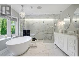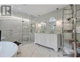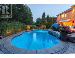Nothing to do but move in and enjoy. 5,446 total square feet of impeccably maintained living space. Gorgeous backyard with pool and patios backing onto green space. Dramatic entry to home with soaring ceiling height with skylight, Scarlett OHara staircase and honed marble floor tiles. Huge primary suite with luxurious 6 piece en-suite and walk-in closet with organizers. The en-suite has a dual frameless shower with Riobel plumbing fixtures including body jets, stand-alone tub over-looking the backyard, two vanities with Swarovski crystal hardware, heated floors, all very tastefully done. Solid wood custom kitchen cabinets with quartz countertops, new appliances, built-in eat-in area, and niche to do homework. Open to family room, great for entertaining. Extensive plaster crown mouldings throughout the main level. Renod laundry room. Newly renovated lower level with plush carpet, many pot lights, new 3 piece bath and fresh paint. Awesome backyard backing onto green space. In-ground pool, gazebo, landscaping, and privacy fencing, fire bowls and patios for gatherings. Thoughtfully updated with recent upgrades to bathrooms, laundry room, furnace, a/c, windows, electrical panel, pool equipment and much more. Fantastic location on a quiet street in an established neighbourhood known for its school district. Convenient access to highway and GO station. (id:50886)