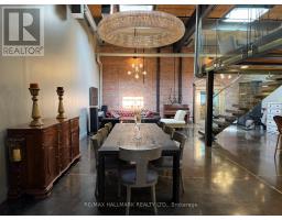 Rare opportunity to lease a fully furnished loft in Leslieville's iconic I-Zone. Offering 2,329 sq ft of living space with soaring timber & beam ceilings peaking at nearly 25 ft, exposed brick, polished concrete floors, and a private 375 sq ft rooftop terrace, this authentic hard loft is truly one-of-a-kind! The chef-inspired kitchen showcases quartz counters, oversized island, and a full suite of top-of-the-line KitchenAid appliances including large oven/stovetop, double-door fridge, wine fridge, and whisper-quiet dishwasher. The open layout flows seamlessly between dining and living spaces while skylights flood the loft with natural light. Every furnishing and finish has been thoughtfully selected: Restoration Hardware dining set, bed, storage units and mirrors, Elte armchairs and coffee tables, hand-knotted Persian rugs, solid rosewood entry chest, and crystal decanters. Essentials are all included, linens, bedding, cutlery, plates, cookware, Breville automatic toaster, Blendtec industrial blender, and Coway Airmega air purifier sized for the entire loft. Simply turn the key and enjoy immediate high-end living. The main level includes a spacious second bedroom, three-piece bath with glass shower, and expansive living areas. The upper-level primary suite offers custom closets and a spa-like six-piece ensuite. This loft comes with a dedicated private underground parking spot. Located in a vibrant, creative hub steps to Queen St Easts trendy restaurants, cafes, galleries, parks, fitness studios, and transit, with quick access to the DVP, Gardiner, and Lakeshore. A rare offering, this is loft living at its absolute best! (id:50886)