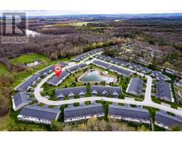 Move-in ready 2-bedroom, 2-bath home in a desirable 55+ land lease community. This bright, well-maintained home offers one-level living with no stairs, engineered hardwood flooring, a spacious kitchen with stainless steel appliances, a solar tunnel for added natural light, and California shutters throughout. The living, kitchen, and dining areas feature a cathedral ceiling, creating an open and airy feel. The fully insulated garage adds extra convenience and comfort. Enjoy peaceful views backing onto a pond and easy access to the recreation centre, in-ground pool, and private 9-hole golf course. Monthly costs include Land Lease $800.00, Property Tax for Site $39.25, and Property Tax for Dwelling $128.32, for a total of $967.57 per month. (id:50886)