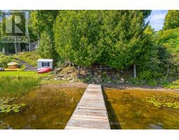 Morning light filters through the trees and glints off Head Lake as you sip your coffee on the deck. Its quiet. Just birdsong and the gentle lap of water against the shore. Set on a tree-lined lot with 100 feet of clean, east-facing shoreline, this 4-bedroom, 3-bath home offers year-round comfort and an easy rhythm of indoor-outdoor living. Inside, the open-concept layout makes the most of the view, with wall-to-wall windows and a cozy woodstove anchoring the main living space. The kitchen is generous and bright - perfect for casual meals, weekend guests, or feeding a full house after a day on the lake. The main-floor primary bedroom features direct access to the deck and a private 2-piece ensuite. Downstairs, the newly renovated lower level includes a large bedroom and wide-open space ready for games, guests, or whatever you need more room for. Steps lead from the house down to the dock, where you'll find deep, clear water and space to swim, paddle, or just float the afternoon away. There's also a 1.5-car garage, main-floor laundry, and thoughtful extras throughout, including most furnishings, a boat, paddle boat, and golf cart, all included in the sale. Under two hours from the GTA and fed by the untouched waters of QE II Wildlands Provincial Park, Head Lake is known for its clarity, calm, and quiet. And this is the kind of place where you can finally enjoy it. (id:50886)