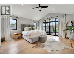 This stunning custom-built home blends modern elegance with practical living, offering high-end finishes and generous space inside and out. From the moment you enter the bright, welcoming foyer, you're greeted by an oversized walk-in closet that doubles as a mudroom—perfect for keeping everything organized. Just off the entryway, a spacious home office offers an ideal work-from-home setup, complete with ample lighting and wiring for a multi-camera security system. The main floor boasts an airy open-concept layout with vaulted ceilings and striking cathedral windows that flood the living room with natural light. A propane fireplace adds warmth and charm, creating a perfect space for both relaxing and entertaining. At the heart of the home is a chef-inspired kitchen featuring a massive quartz island that serves as a prep area and social hub. High-end appliances include a five-burner gas cooktop, double wall ovens, a stainless steel refrigerator, and a matching dishwasher. Thoughtful details like a pot filler, soft-close cabinetry, custom lighting, and a separate canning/prep room enhance both style and function. The adjoining dining area overlooks the private backyard and tranquil ravine, offering a beautiful setting for everyday meals and special gatherings. Upstairs, you’ll find three spacious bedrooms, a full bathroom, and a convenient laundry room. The luxurious primary suite features a walk-out balcony with peaceful views of a nearby horse paddock and hot tub—perfect for quiet mornings or evenings. The spa-like ensuite includes a deep soaker tub, double rainfall shower, and large walk-in closet for a true retreat experience. The fully finished basement offers even more living space, with a large family room, fourth bedroom, and full bathroom—ideal for guests or extended family. Additional highlights include heated garage floors, premium finishes throughout, and a serene, natural setting that offers privacy and beauty. (id:50886)