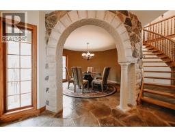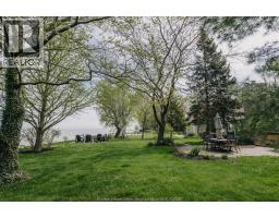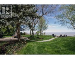 This enchanting 5 bedroom, 3.5 bath custom-built home rests on 100 foot waterfront lot on the shores of Lake St.Clair, wrapped by peaceful grounds with mature trees. Extending 3637 square feet this gem features 2 main floor bedrooms, primary with ensuite and walk-in-closet, intimate dining room, breakfast nook, kitchen with wet bar and wood-burning fireplace. Architectural details define the space with natural stone floors, dramatic beams, Italian oak staircase, turret bedroom, wrought-iron gates and big windows throughout showcasing lake & sunset views. Nestled on an executive dead-end street, less than 5 minutes from marinas and golf course and woodlands ’Ruscom River Conservation Area’ at your front door. This home is great for enjoying nature, seclusion, and entertaining. Truly one-of-a-kind! Reach out to listing agent to view it today! (id:50886)