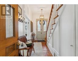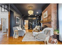 The Dolmage House, a historic Grimsby landmark surrounded by mature trees & nature. Built in 1876 by a local businessman for his wife & 3 daughters, this Italianate Victorian home blends timeless charm w/ modern luxury. The original double red brick walls are structurally sound &highly insulating, offering the perfect balance of character & warmth. The new flagstone pathway leads you to this 4-bed, 4-bath home spanning 3644 sq ft of thoughtfully designed space. Enter to a bright living area & an elegant dining room w/ pot lights, chandeliers, a century upright piano & heritage-style gas fireplace. Heart of the home is the remodeled modern farmhouse kitchen, featuring an oversized island, reclaimed barn wood elm floors, GE range oven, Bosch fridge, & Perrin & Rowe English Gold faucet. Adjacent is a mudroom/main-floor laundry w/ heated floors, built-in shelves, & a convenient powder room. Upstairs, the grand primary suite has 5 B/I closets & a 4-pc ensuite w/ a double vanity & curb-less glass shower. 2 oversized bedrooms w/ bay windows and spacious closets offer comfort, 1 of them w/ a Victorian coal fireplace. Third-floor loft retreat includes space for an extra bedroom luxurious 3-pc bathroom w/ a clawfoot tub. Century-old speakeasy wine cellar, featuring wood beams, & a bespoke wood wine rack originally made for a local winery. Outside, enjoy new Arctic Spas wi-fi enabled saltwater hot tub, wrought iron & wood fencing, 2 enclosed yards, & a Muskoka-style fire pit. Refurbished spiral staircase, originally made for the candle coal factory in Grimsby, leads to a rooftop terrace w/ escarpment views. 7-car parking area & room for a garage. Located in a top school district, enjoy immediate access to the Bruce Trail, 40 Mile Creek Pedestrian Bridge, & a public pool across the street. Historic Downtown Grimsby is just a 7-min walk. Updates include a new roof, tankless water heater, upgraded electrical panel, & new storm windows, blending heritage w/ energy efficiency. (id:50886)