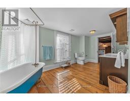Welcome to this beautiful 2,703 square foot rustic farmhouse built in 1880. Situated on just over half an acre, this property offers one of the largest Smithville town lots on municipal services! An addition was constructed in 2015 to add a mudroom w/ heated floor, a 1.5 car heated garage & a bonus family room above the garage w/ a 3pc bathroom. This loft could function as an office or be converted into an in-law suite! The kitchen was renovated in a classic style w/ Martha Stewart cabinetry, quartz countertops, a kitchen island & pine board ceiling. Original wood plank flooring carries throughout the main home structure, w/ 12 baseboards & wood trim throughout. A grand dining room connects seamlessly to the living room & provides the perfect entertainment space. The main floor bathroom was renovated w/ a marble shower, vinyl flooring & quartz countertop. The primary bedroom boasts a vaulted ceiling w/ wood beams & ensuite privilege to a 4pc bathroom w/ an antique clawfoot tub/shower. The front staircase leads to 2 additional bedrooms & a storage closet w/ access to a large attic space for additional storage. This extra large rear yard includes two separate decks for enjoyment, as well as a hot tub & pergola covered in vines for a cool shaded area to sit in summer. The playground structure & 2 additional outbuildings provide ample storage for equipment & a workshop area w/ hydro. Updates include shingles (17), furnace/AC/HEPA filter (22), sump pump (22), eavestroughs/downspouts (23). (id:50886)
