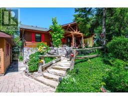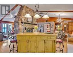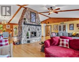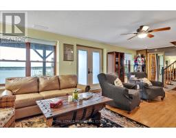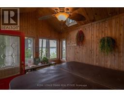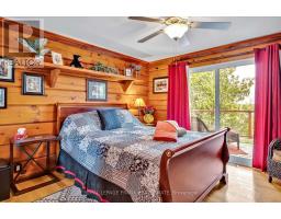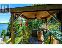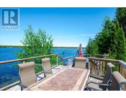 Spectacular million dollar view, weed-free swimming off the dock, gorgeous Confederation log home on Pigeon Lake on the Historic Trent Severn Waterway. Check out this lovely private setting, through the impressive gates to a lovely fully fenced, landscaped back yard with stone patio and perennial gardens. Extensive armour stone adds to the wow factor of the welcoming post and beam covered deck and entranceway. Enter to a lovely updated kitchen with island, dining room and a central two sided floor to ceiling stone fireplace. The living room, opens to a huge waterside deck, showcasing spectacular sunsets. The East Wing features the primary bedroom with walk-in closet and four piece ensuite. The West Wing has another 4 piece bath, lakeside guest room and third main floor bedroom, presently used as an office. The lower level presents a large family room with walkout, two more bedrooms, third bath and laundry, and a fabulous home gym. There is an abundance of storage room throughout this home. Step into the hot tub room with a wonderful view of the lake, the stairs lead to the clean and deep swimmable waterfront, with dock and boat lift, but don't forget to stop along the way at the tiki-hut and bar. Double detached garage, two sheds, easy access to Buckhorn and all amenities. 1.5 hours from the GTA. (id:50886)