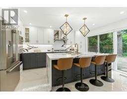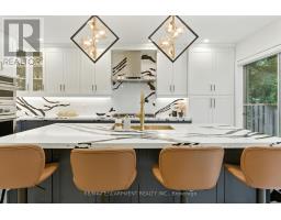 A newly renovated, move-in-ready home located in the prestigious Lorne Park community. Set on an expansive pie-shaped lot with a 223 ft depth and 100 ft width across the back, this stunning property blends timeless elegance with modern upgrades and high-end craftsmanship throughout. The exterior features a classic brick facade, manicured landscaping, a four-car driveway, a double-car garage, and elegant exterior lighting, offering exceptional curb appeal. Inside, the home has been fully updated with brand-new electrical wiring and plumbing. A grand foyer showcases imported Italian marble tile with black marble inlay and a striking chandelier. The open-concept main floor features hardwood flooring, pot lights, custom Zebra blinds, and spacious formal living and dining areas filled with natural light. At the heart of the home is a designer kitchen, complete with white and navy cabinetry, quartz countertops & backsplash, premium appliances, gold accents, and a double-sided waterfall island, perfect for both everyday living and entertaining. Step outside to a flagstone patio surrounded by ambient lighting and lush landscaping. Upstairs, the luxurious primary suite includes a custom walk-in closet, a spa-like ensuite, and one of two custom accent walls (the second featured at the staircase). Three additional bedrooms offer generous closet space and share two modern bathrooms. Additional highlights include a stylish powder room, mudroom with laundry, and a large lower level with endless potential. A true turnkey property in one of Mississauga's most sought-after neighbourhoods. (id:50886)