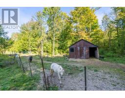 Country Home or Cottage Retreat on 25 Beautiful Acres. Embrace the tranquility of nature in this raised bungalow, set on 25 acres featuring a mix of open land and mature trees. Follow the trail to a secluded meadow, beyond the meadow are more trails that lead to the back of the back of the property - perfect for family gatherings or a quiet escape from the bustle of town. With a barn, garage and even a sugar shack, there's plenty of space for storage, hobbies or outdoor adventures. Garden lovers will enjoy apple and pear trees, strawberries and more - an ideal canvas to cultivate your green thumbs. Inside, the spacious foyer welcomes you to the lower level, complete with a recreation room, den, 2-piece bath and convenient main level laundry. Upstairs, the open concept kitchen, dining and living areas showcase peaceful treed views. Step out onto the balcony for BBQs and entertaining. This home offers great potential for families or anyone looking to add their personal touch. Recent updates include new exterior siding, Roxul insulation on both levels, some new doors and windows, a new woodstove and basement drywall. Ideally located close to Wiarton, Sauble Beach and Owen Sound. (id:50886)