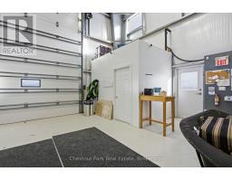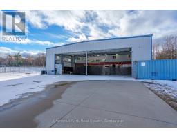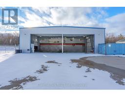 Pristine Airport Hangar FOR SALE: Located at Muskoka Airport, this 5,747 sq ft hangar offers a 61 foot wide door and 18 foot high door, large concrete apron, perfect for business or personal use and was previously used by a helicopter company. The building has both 100 and 200 amp electrical service, six zones of heated in-floor concrete, three offices on an elevated mezzanine, full security system and additional forced air heat when doors are open in the winter. The building has its own well and septic along with 3 piece washroom with shower. The hangar is on leased land with the District of Muskoka at a cost of $908 per month, plus monthly taxes of $520.25. The Muskoka Airport (CYQA) has one runway. The runway 18/36 is 1,829 m long and 45.7 m (6,000' x 150') asphalt and has a Pavement Load Rating (PLR) of 9-capable of carrying loads of 90,720 kgs (200,000 lbs) MTOW. Runway 18 has a displaced threshold of 244m (800') due to the 4 lane Highway in the approach path. Runway 18 is equipped with a Precision Approach Path Indicator (PAPI) and a Non Directional Beacon (NDB) located 3.5 nautical miles from the airport. Both runway orientations 18 and 36 have GPS based approaches charted as RNAV (GNSS). The airport also has Directional Finding Equipment (VHF-DF) that can be used to locate aircraft through their transmission frequency. The Muskoka Airport is an official Canada Customs airport of entry. (id:50886)