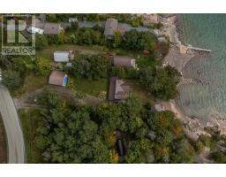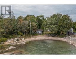 Charming waterfront home on Joe Dollar Bay in Bruce Mines, fully furnished and ready to go for seasonal use, nearly ready for year round enjoyment. This 2-bedroom gem features a loft overlooking the bay, perfect as a third bedroom. The primary bedroom boasts a sliding glass door to a small patio with a roll-out awning. Enjoy the great swimming beach with a wooden platform for lawn chairs and a large floating dock for summer fun. The home and outbuildings, including a cozy bunky by the water, a convenient storage building next to the house, and a spacious 2-car detached garage, all feature durable metal roofing. Note: the property requires a winterized lake intake water supply to be fully move-in ready. This idyllic retreat offers years of serene lakeside living. (id:50886)